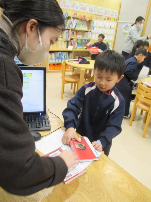 冬休みはどんな本を読みましたか?図書室は、今日も昨日も借りた本の返却をする子たちで大にぎわいでした!本を実際に手に取ると、その楽しさが想像以上だと感じるようです。3学期も図書室へ行こう!