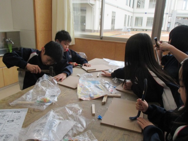 3年生の図画工作科は、金づちを使った学習に入りました!くぎの打ち方を工夫すると、おもしろいゲームができそうです!ワクワクが止まらない2組のみんな、くぎ打ち、楽しかったね!