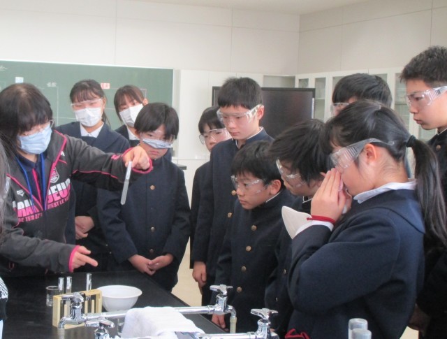 6年3組は、金属に塩酸を加え、反応をみる実験中。塩酸はたしか、強い酸性の液体でしたよね。鉄やアルミニウムは溶けそうだけど、結果は…、あれ?何があったのでしょう!そして、どういう結果になったのでしょう?