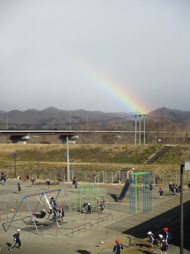 また虹が出てる!梁川には今週もたくさん虹が出ましたね。そんな中、子どもたちは元気に遊び、元気に帰っていきました!あれ?4年生が「43」を出してますね。さあ、これはいったい何の数字でしょう!?