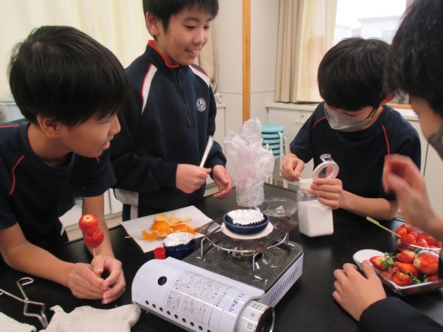 今日はみんなが楽しみしているクラブ活動の日。こちらの科学実験クラブ、見てください!アレンジを加えながら、オリジナルの飴作りに挑戦中ですが、とーっても楽しそう!そして、おいしそうですね♪来週はいよいよクラブ活動見学会です!