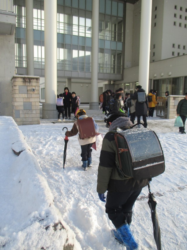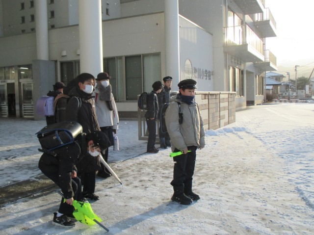 今朝も一面銀世界!みんな足下に気を付けて、登校してましたね。こんな寒い中でも、ボランティア委員は正門に立って元気に「おはようございます!」おかげでみんな気持ちよくスタートできています♪