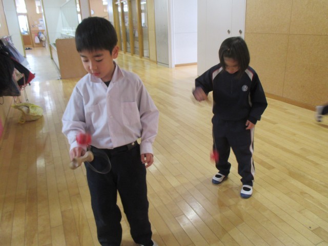 先日、けん玉名人を紹介しましたが、今日、新たにけん玉名人を2人発見しました!いとも簡単に技を繰り出すけん玉さばき、一見の価値あり!けん玉をやってみたい人は1年教室へ急ごう!