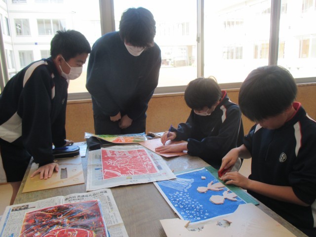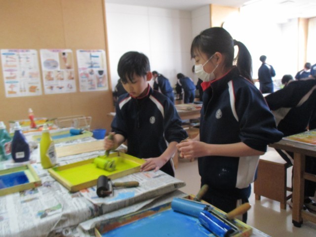 多色刷り版画に挑戦中!(6年3組)