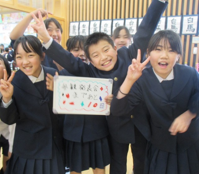 いつも元気はつらつの4年生が、満面の笑みで「あと10日」を掲げています!そう、参観発表会まであと10日ですよ!みんな、がんばろうね!さあ、明日は誰がカウントダウンをしてくれるのかな?