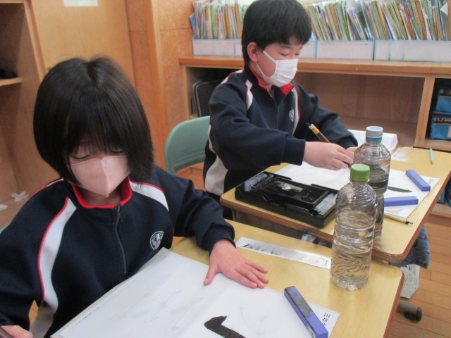3年生になり、新しく始まった毛筆の学習。最初の漢字は「一」でしたね。それが3学期になった今は、漢字2文字!みんなずいぶん上手になったね♪