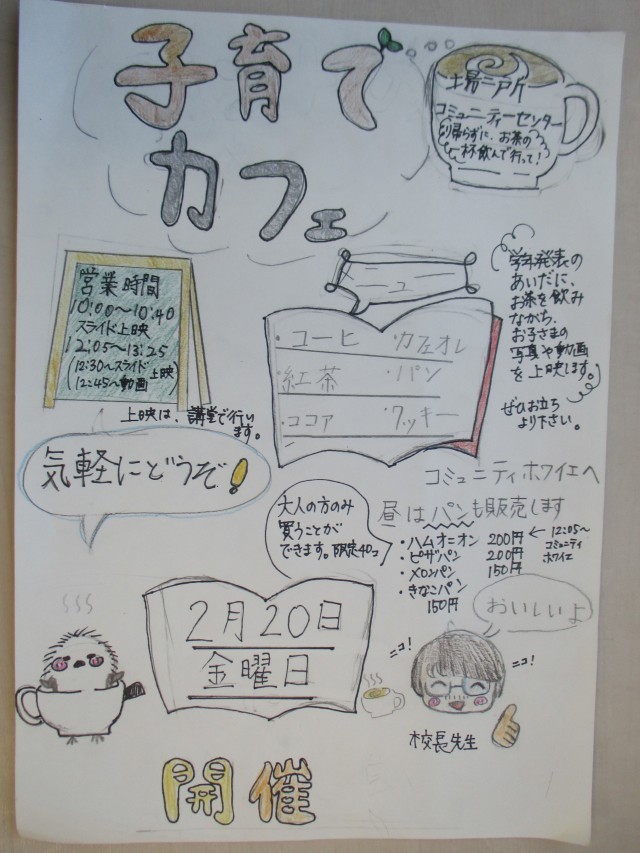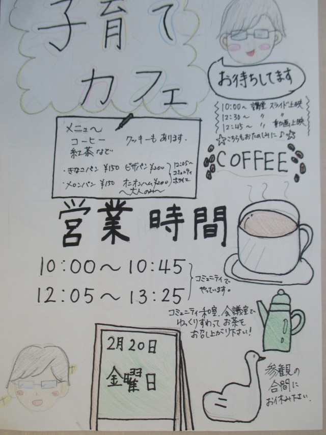 子育てカフェはもうご存じですよね?金曜日の参観発表会では、ホントのカフェがオープンしますよ!発表会においでの際は、どうぞ一息ついていってくださいね♪
