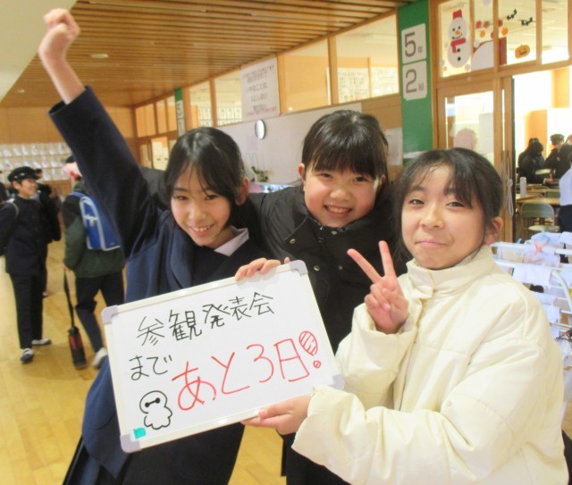 今日は5年生が「あと3日」を掲げてくれています!ありがとう!そして、6年生の教室には「卒業まであと22日」の文字。参観発表会といい、卒業といい、あっという間だ!
