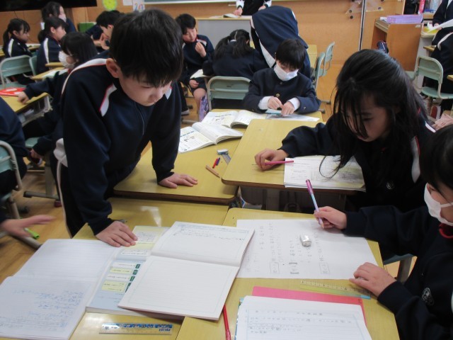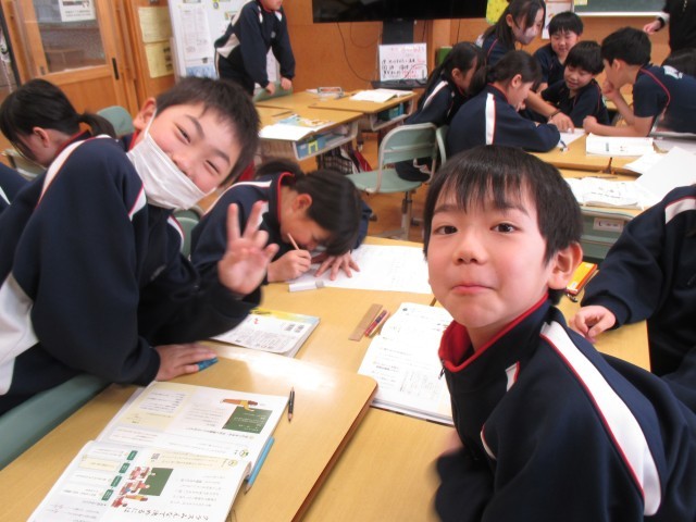 4年生はアンケートをもとに、みんなの生活の実態を伝える学習をしています。「習い事は?」「朝ご飯は?」見ていると、予想外の結果になりそう!結果が出たら、聞きに行きますね♪