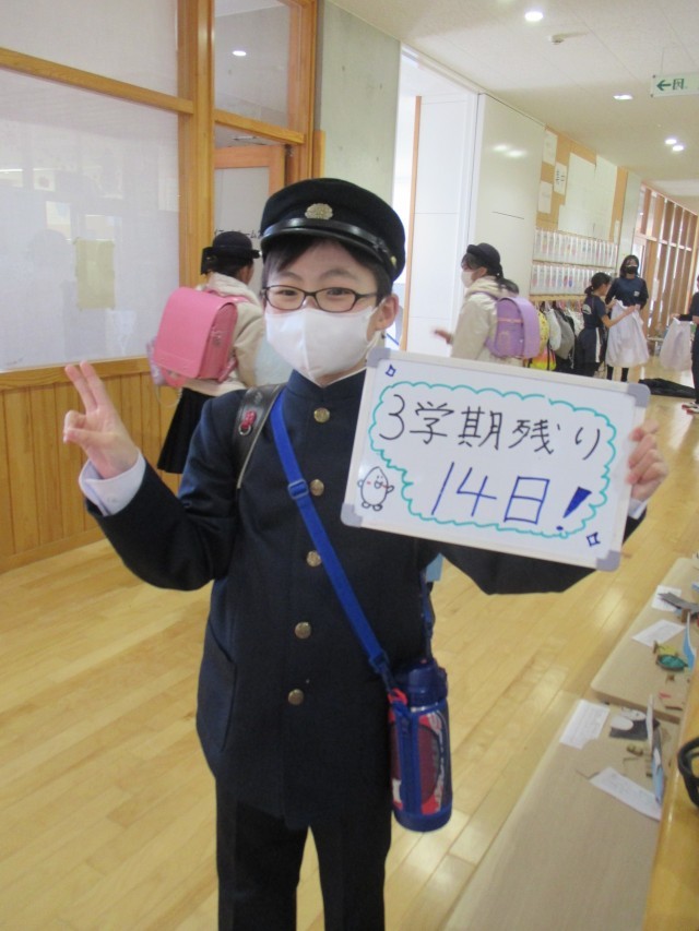 3月になりましたね!ボードを見ると、3学期はあと14日!今週もみんなでがんばろう!きっと明日も楽しいこと、あるはず!