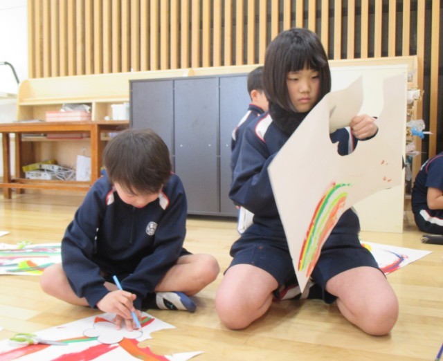 お待たせしました、保護者の皆様!明日は2年生の参観発表会です!今日もみんな一致団結して準備を進めていましたよ。これらのカラフルなお花たちが、明日、どこに登場しているか、探してみてくださいね!お待ちしています♪