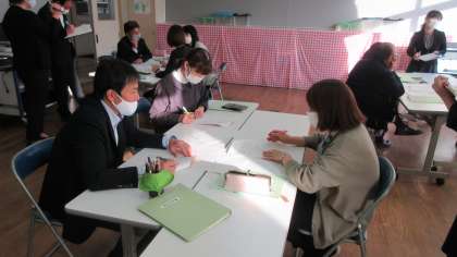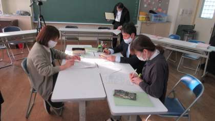 カリマネミーティング 公開日 2020/11/02 更新日 2020/11/02 校長室&職員室より 先生方も、子どもたちのさらなる成長を願って、研修をがんばっています。 この日は、県教育センターの先生方においでいただき、カリキュラム・マネジメントの研修に取り組みました。 グループ協議では、真剣に意見が交わされました。