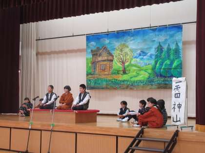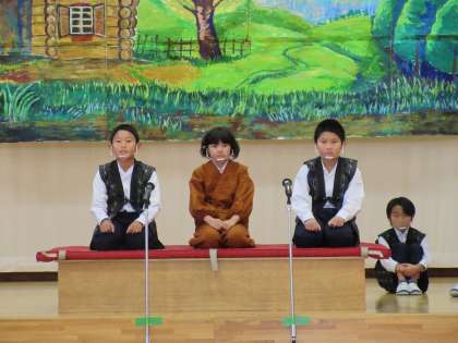 総合の時間に、民話の先生から教わったお話を、学習発表会で披露しました。