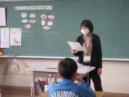 3年生で栄養教室がありました。栄養士の先生においでいただき、「かむことの大切さ」について学習しました。
