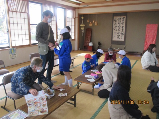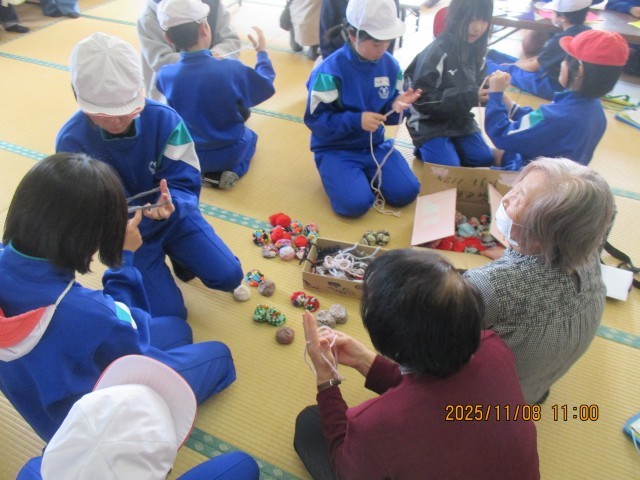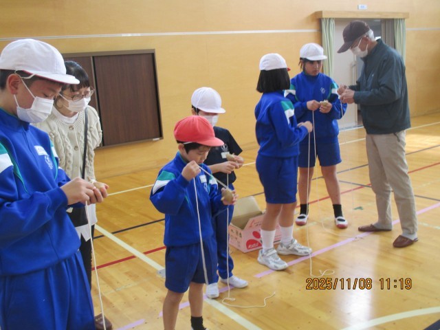 おてだま、あやとり、竹馬、グランドゴルフ、こま、ヨーヨー、折り紙、輪回しなどの「昔遊び」も体験してまわりました。