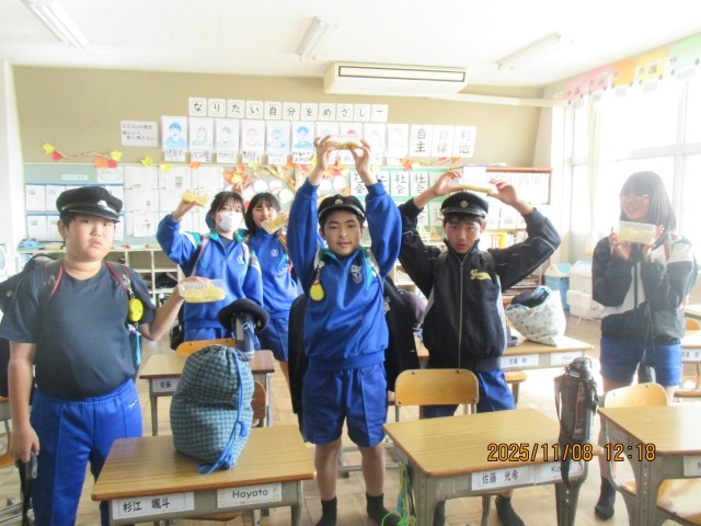 三世代ふれあい活動の最後は、おもちをもらってにっこり!!下校をしました。「わーお...