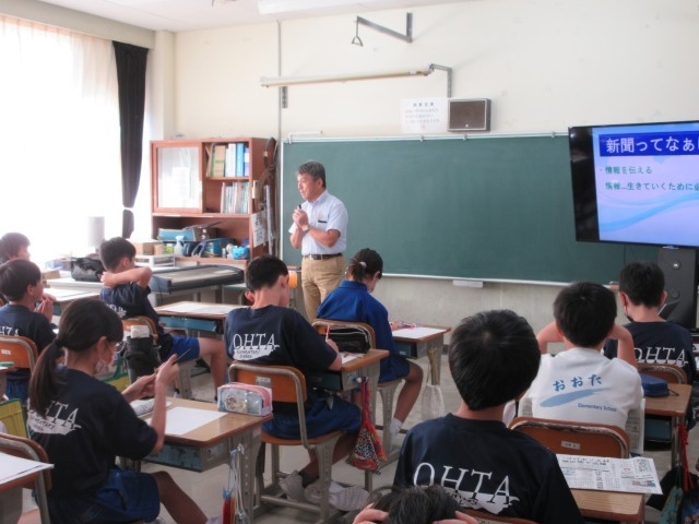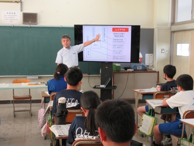 福島民報社の方を講師に迎え、5年生で「民報出前授業」を行いました。
