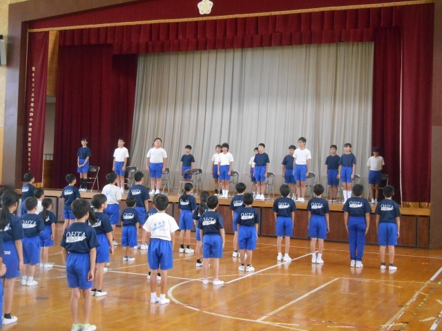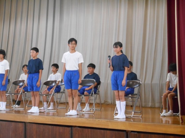 壮行会では、6年生からの目標発表の後、1~5年生で「負けないで」を歌い、6年生を応援しました。