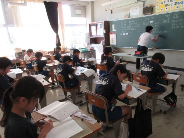 体育科、算数科、外国語活動、国語科の授業に落ち着いて取り組んでいます。