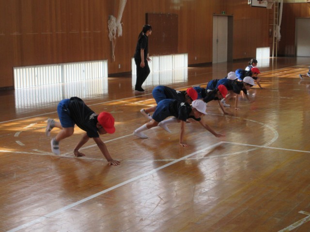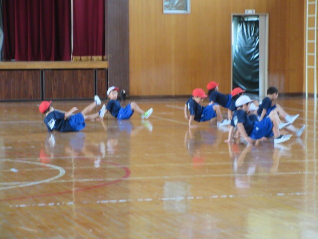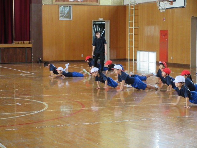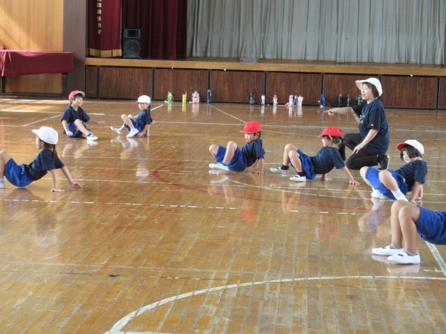 アザラシやクモ歩きなどの様々なプログラムに一生懸命の1年生。