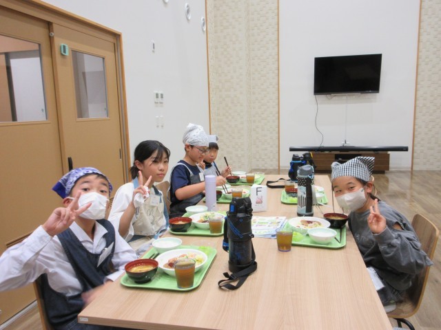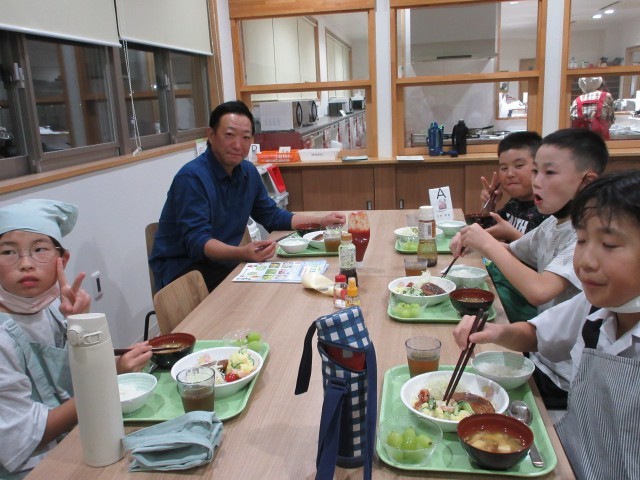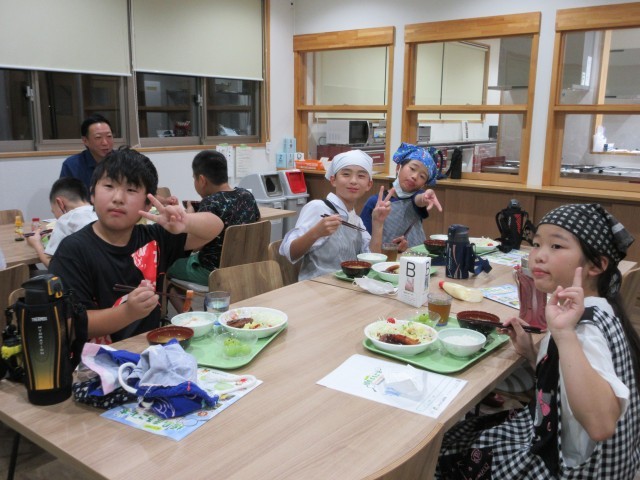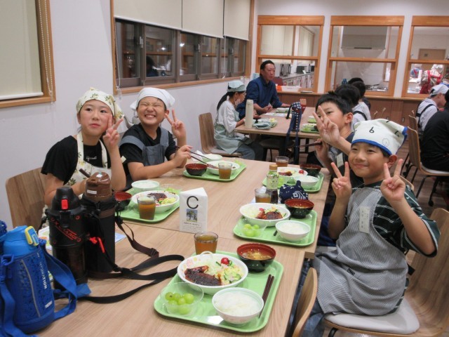 みんなで協力して夕飯をつくり、おいしくいただきます。
