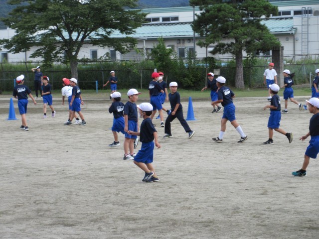 「投げたい人いる?」フリスビーをキャッチした上級生が下級生に声をかけます。