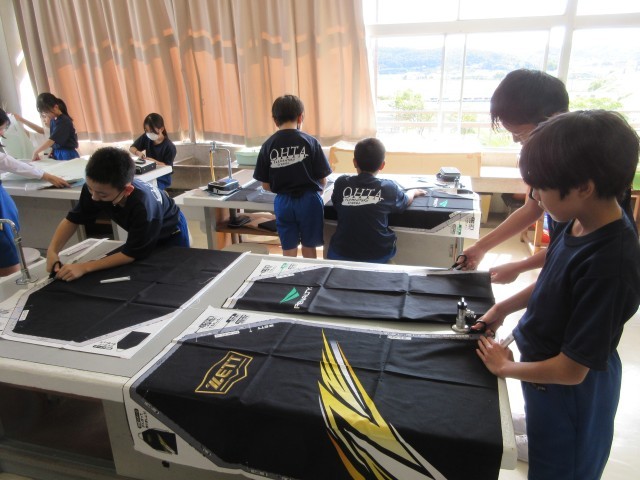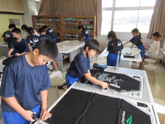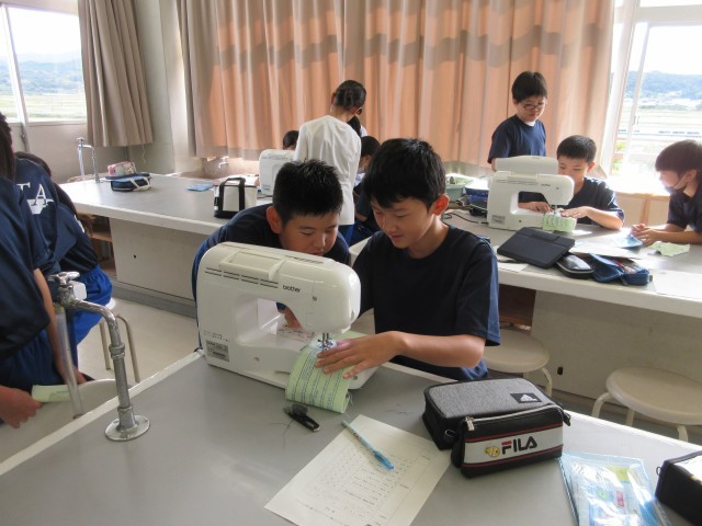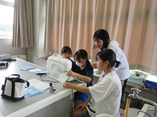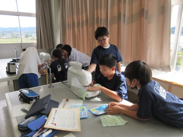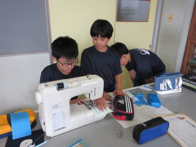 互いに教え合いながら、熱心に取り組むことができました。エプロンの完成が楽しみです♪