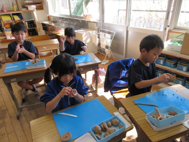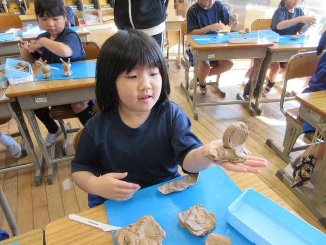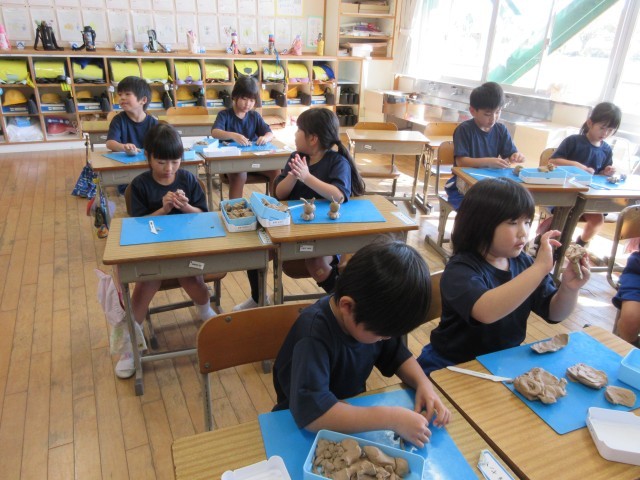 1年生の図画工作科の授業では、「すきないきものをつくろう」の学習です。