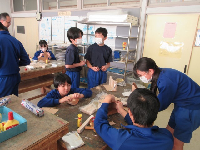 6年生の図画工作科の授業では、「金属と木でチャレンジ」の学習です。