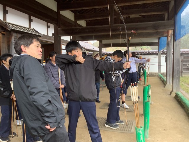 幕末会津藩の教育について説明していただき、楽しみにしていた弓道体験をすることができました。