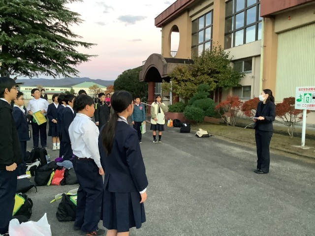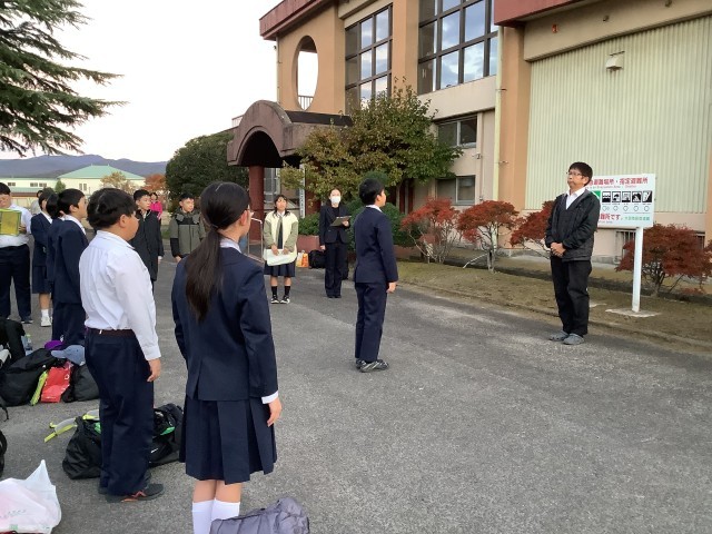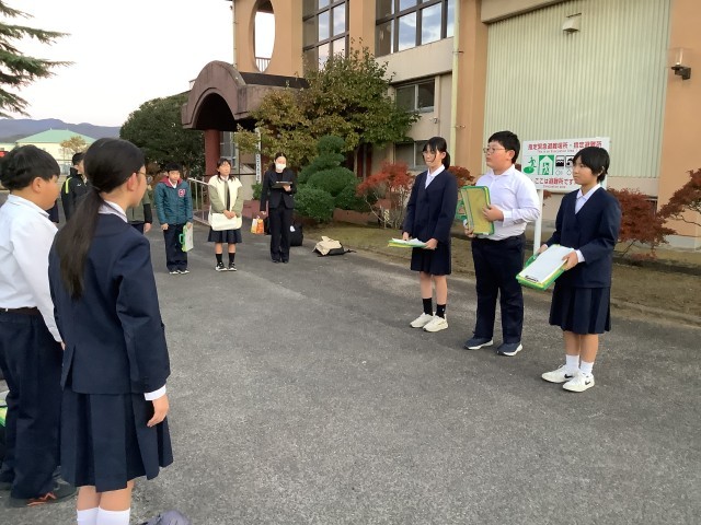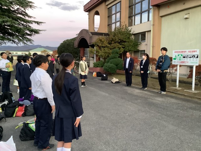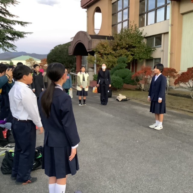 1泊2日の修学旅行を終えて学校に到着し、帰校式です。