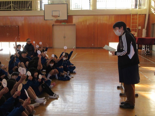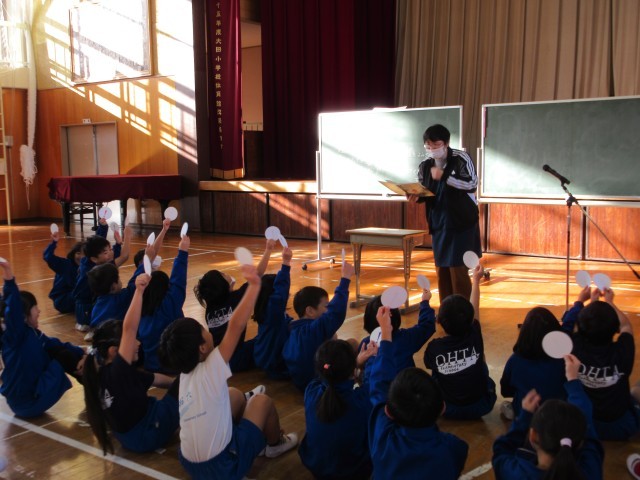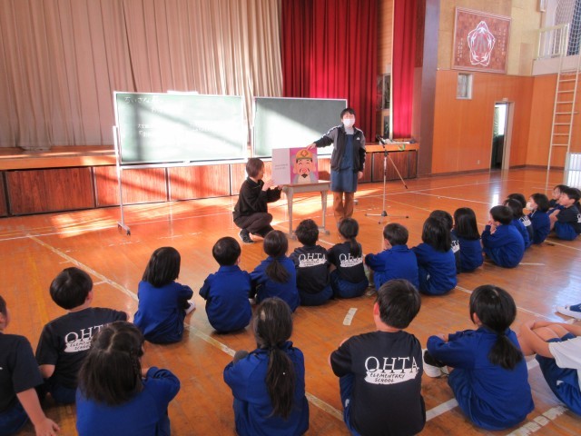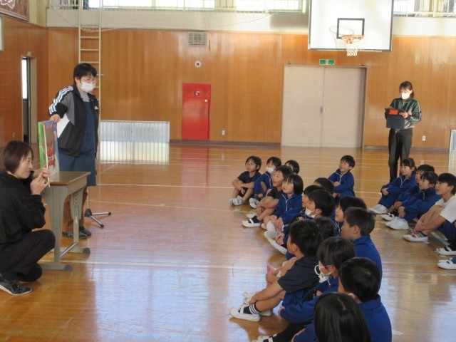 学校司書の先生が、1・2年生に読み聞かせとアニマシオンをしてくれました。