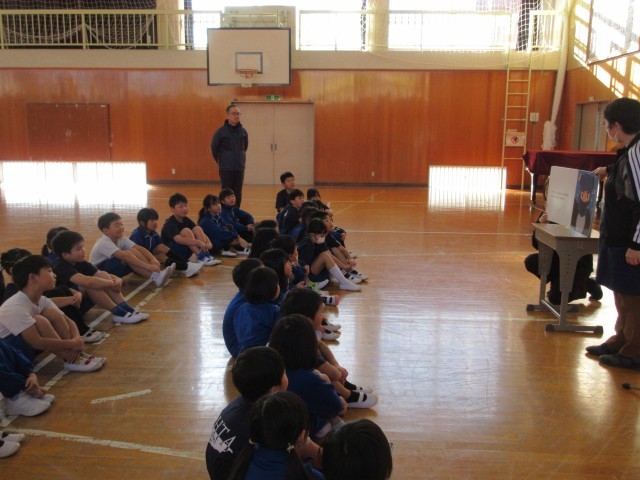 真剣に話を聞く1・2年生。
