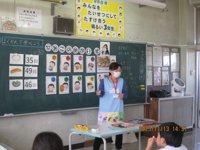 伊達市中央給食センターの方をお招きし、3年生の食育指導を行いました。