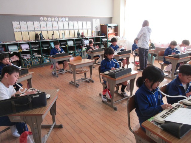 国語科、音楽科、道徳科、体育科の授業に落ち着いて取り組んでいます。