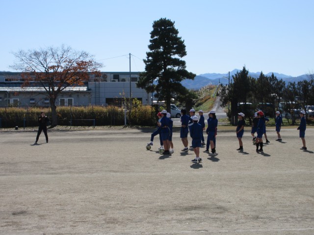 先日のサッカー教室で教えていただいたことを生かしながら、楽しく活動しています。