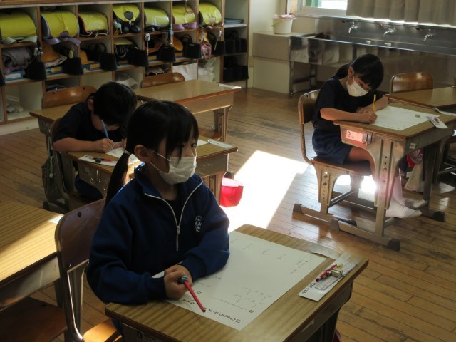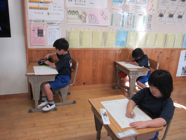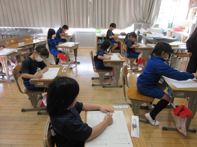 1年生の教室では、満点めざして一生懸命取り組む姿が見られました。