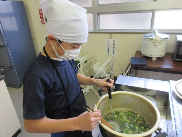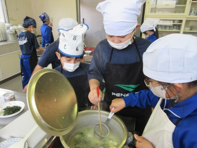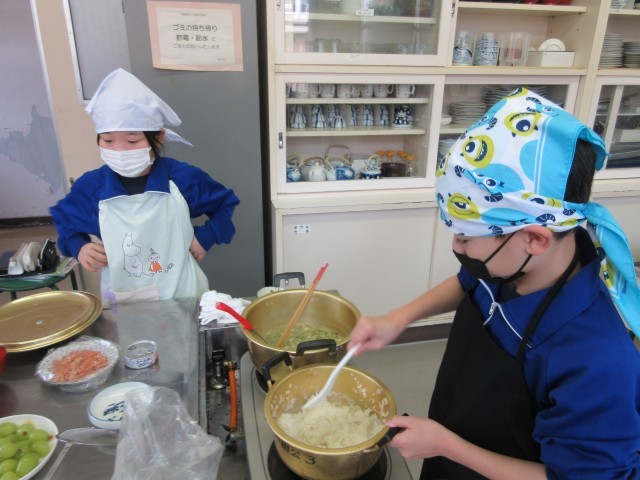 5年生の家庭科の授業では、「ご飯とみそ汁を作って食べよう」の学習です。
