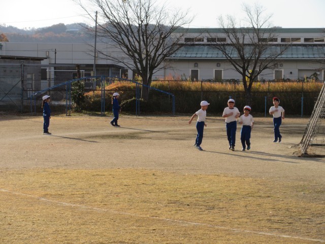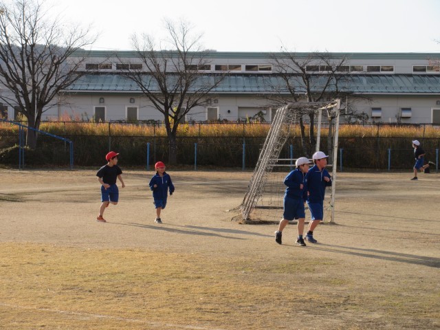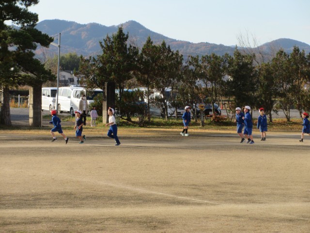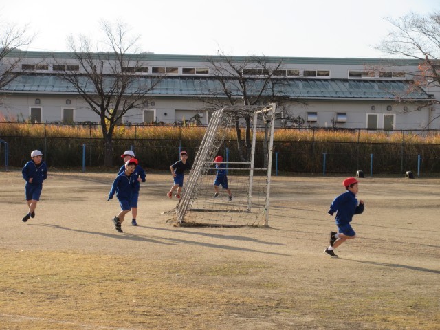 朝の校庭では、マラソンをがんばる子どもたちの姿が見られました。