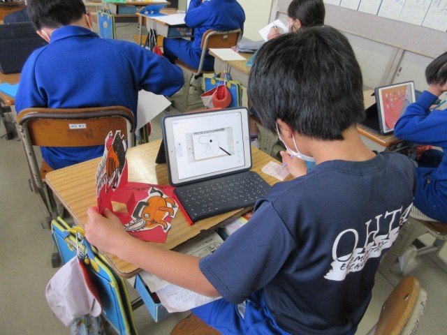 4年生の図画工作科の授業では、「飛び出すハッピーカード」の学習です。