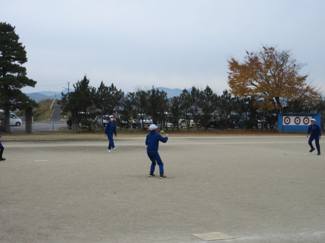 2チームに分かれて、ティーボールの試合を行います。