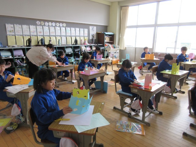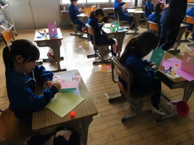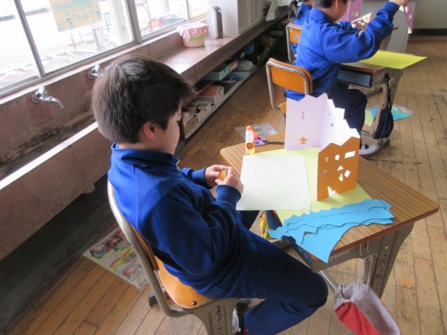 2年生の図画工作科の授業では、「まどのあるたてもの」の学習です。