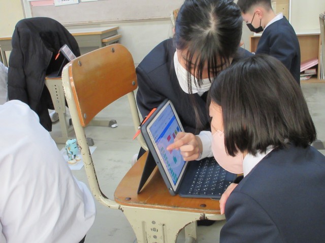 昨日学習した内容に加え、新しい動きやブロック、定義の作成など、熱心に取り組むことができました。