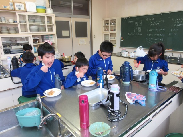 今日の3年生の総合的な学習の時間の学習は「作って食べよう」です。