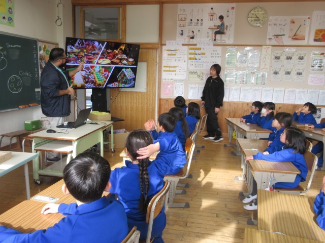 1年生も、ALTのナバロ先生と一緒に外国語活動です。