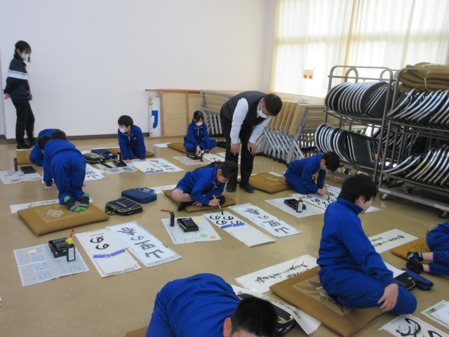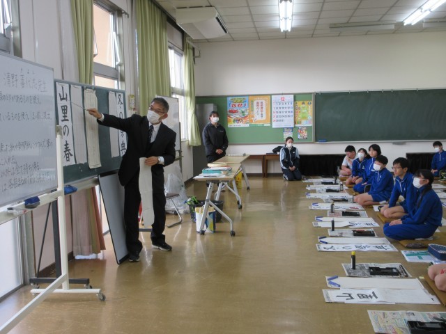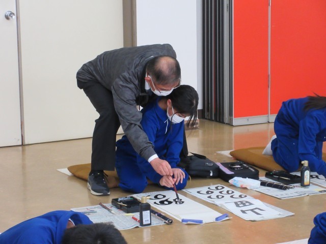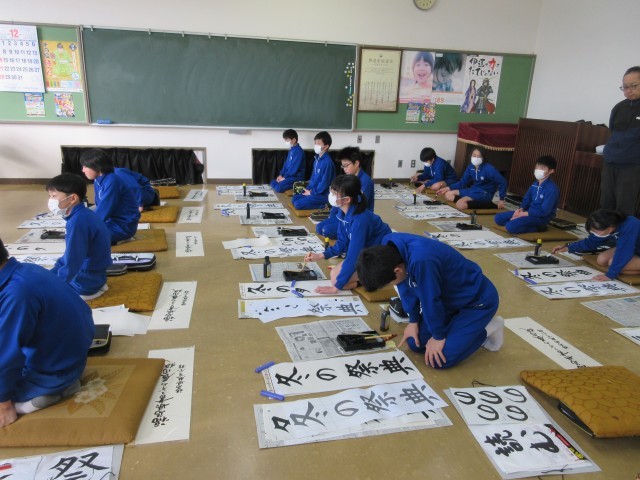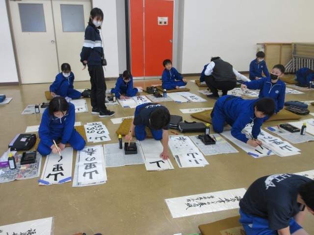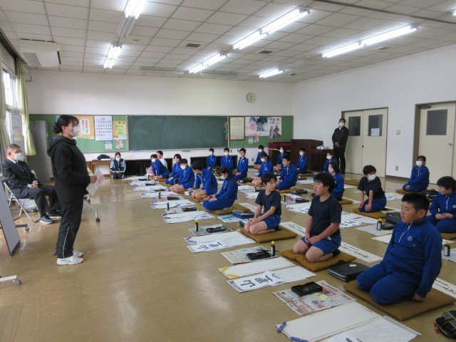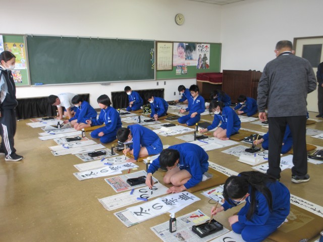 今日も、福島県書写書道教育研究会元副会長の講師の先生をお招きし、「書きぞめ出前授業」が行われました。