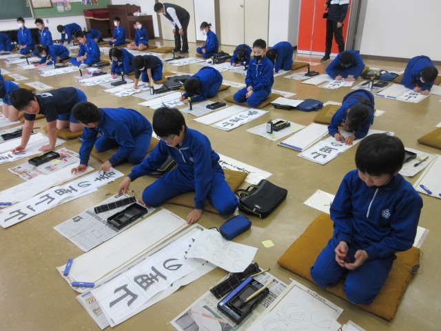 5・6年生はお手本を見ながら練習し、清書にも取り組むことができました。