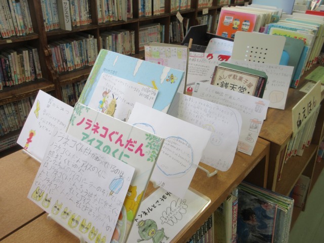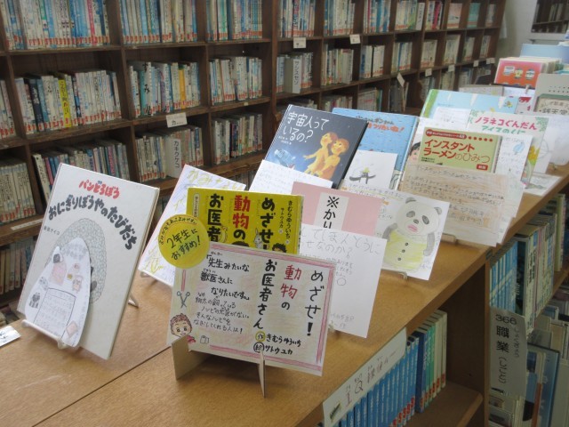 図書室に入ってすぐの場所が、素敵な図書コーナーとなっています。4年生ありがとう!
