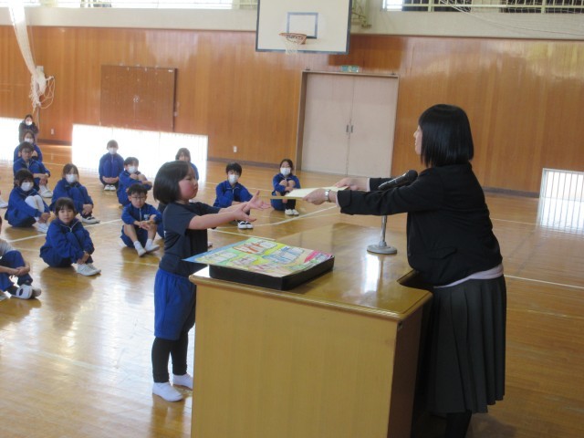 優秀賞の賞状を手にした笑顔いっぱいの児童に、全校児童から大きな拍手が送られました。