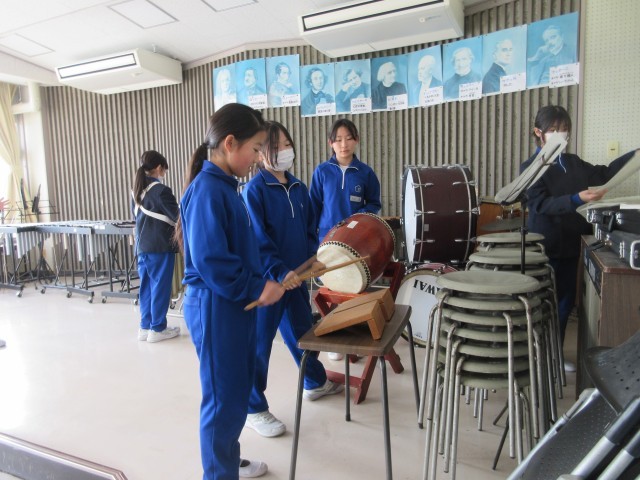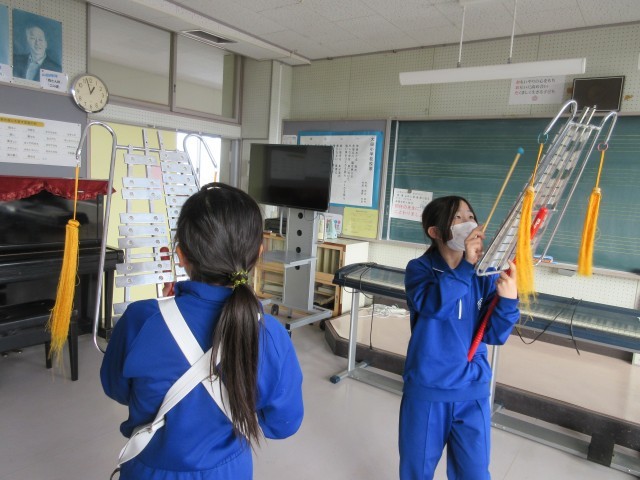 パートに分かれ、6年生から演奏の仕方を教えてもらいます。